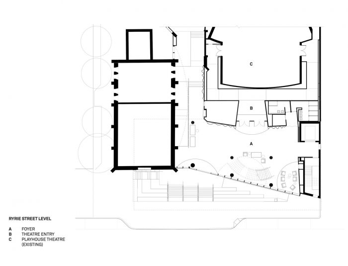 The design seamlessly blends the old and the new, introducing a modern, translucent form that dramatically reveals a once-hidden heritage church. This form sits above a new foyer and forecourt, projecting out into Ryrie Street to establish a strong civic presence and more fluid connection to the surrounding area. Just as importantly, it provides universal access to the Playhouse Theatre and studios – making Geelong Arts Centre a cultural hub that can be enjoyed by everyone.