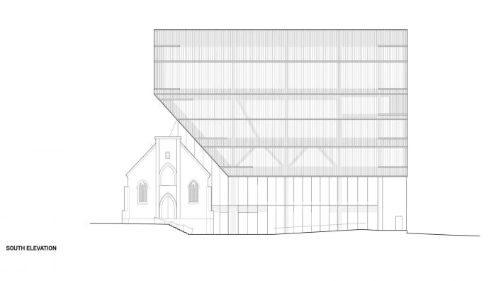 该设计将新与旧完美地融合在一起,引入了一个现代的、半透明的形式,极大地揭示了一个曾经被隐藏的遗产教堂。这种形式位于一个新的门厅和前院之上,突出到瑞丽街,以建立一个强大的公民存在和与周围地区更流畅的连接。同样重要的是,它提供了通往剧院和工作室的通用通道--使吉隆艺术中心成为人人都能享受的文化中心。