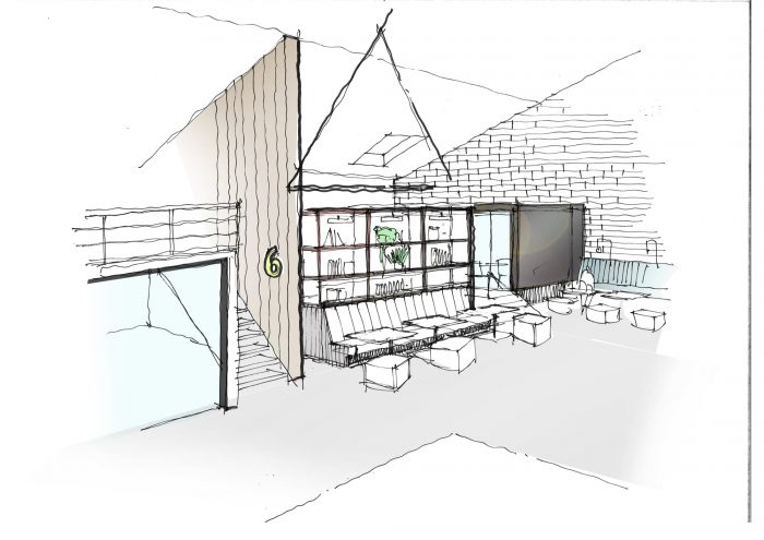 Features from the original use of the building can be seen throughout, including original numbers stenciled on the glazed brickwork that previously labeled the usage of each machine and two-period trusses. The original tiled brick façade has also been maintained with aged copper cladding used to reference the rusted metal objects found in the Generator Building.