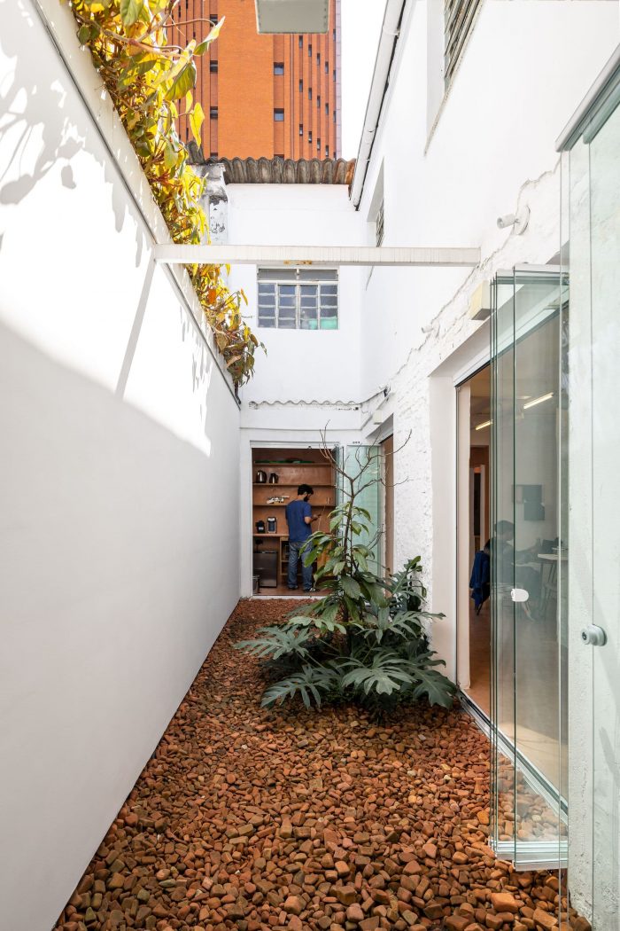 Handling a rental space, located in an architectural complex which was protected by a Conpresp preservation ordinance, Canoa Arquitetura faced the challenge of proposing a controlled-cost intervention, aiming especially on the internal areas. Previously, the building had sheltered a communication agency and was characterized by intense segmentation into small scale rooms. They were poorly illuminated because of the inexistence of lateral recesses from neighbors and because of the partial occupation of the central patio, that had given place to a bathroom and a lunch counter. Making things even mor complicated, the building’s construction system was based on structural ceramic brick masonry, which conferred a structural role to most of the room partitions.