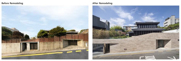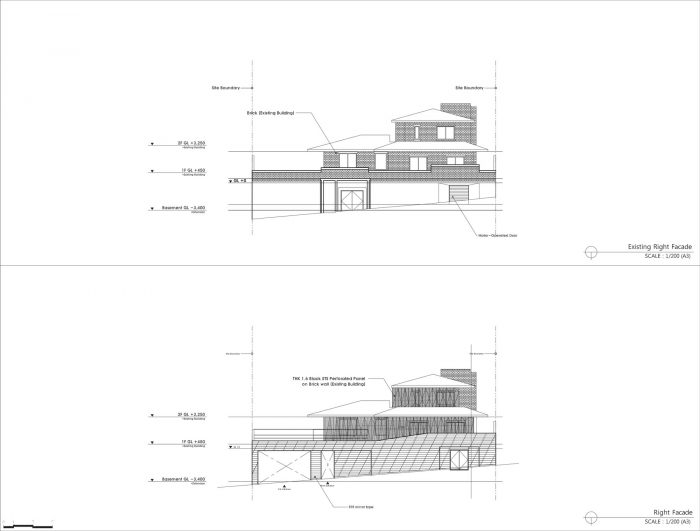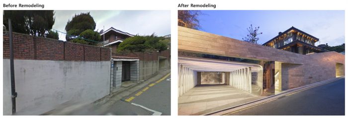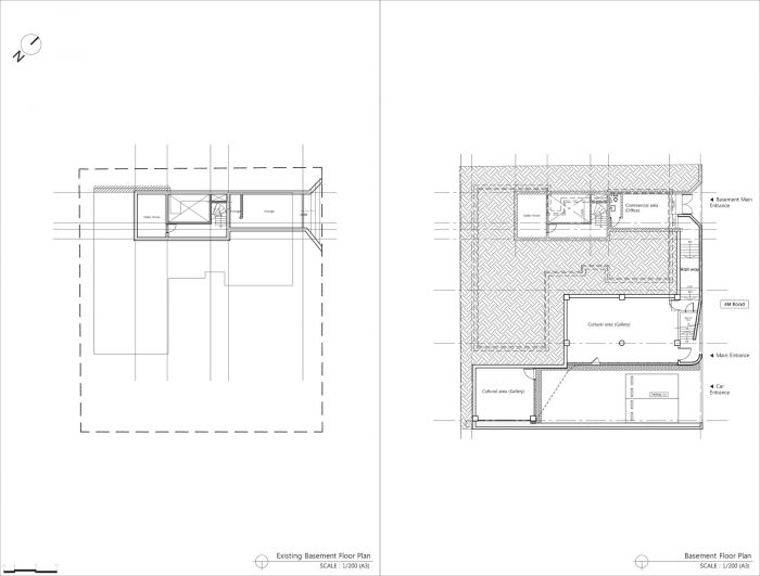 The most important and the most difficult part of remodeling is reviewing the measurements considering the commerciality of expanded space. It means the scope and budget of remodeling and decides the future commercial value of architecture. Considering the limited budget and the future expandability, I chose the basement space that can be expanded regardless of floor area ratio as the major site of this project. In other words, I secured on the basement the required parking space considering the maximum virtual measurements for future expandability.