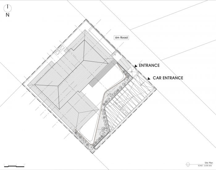 Giwa roofing is a system of a type of geometric orders. It is a combination of units optimized to endure rain and snow and an economical system to build the gable shape. These tiles pair up with one another to create texture and tactual sophistication. However, the sophisticated Giwa tiles are sometimes placed on the ambiguous borderline. The curved figures of Giwa cluster to form the wavy shapes and the triangular geometry of gable constructs the order of the past. How would you comprehend the rules created by the repetition of its texture and geometry and modernly reinterpret the geometric cluster of the units? They come from the geometric combination by sentimental identification.