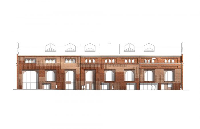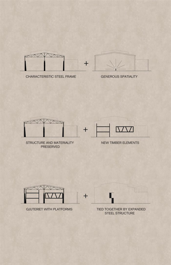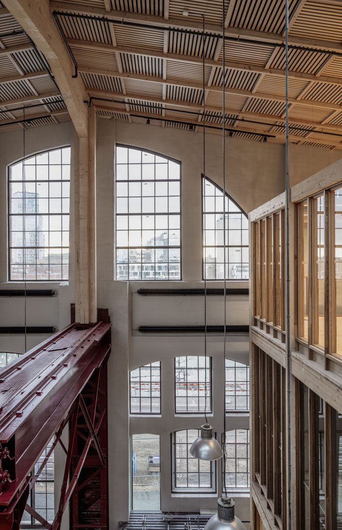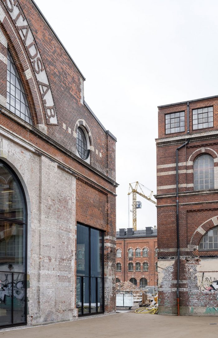 Kjellander Sjöberg began with what was already there: the imposing steel structure, the brick walls, the frail and broken collage-like character of the building we found – all these preserved stories and narratives that have accumulated over time. The characteristic basilica gables were renovated and insulated on the inside. The fragmented collage of the west façade that bore interesting historical traces lives on with a new protective outer façade of recycled brick.