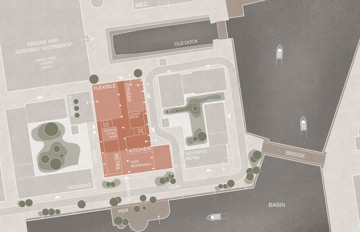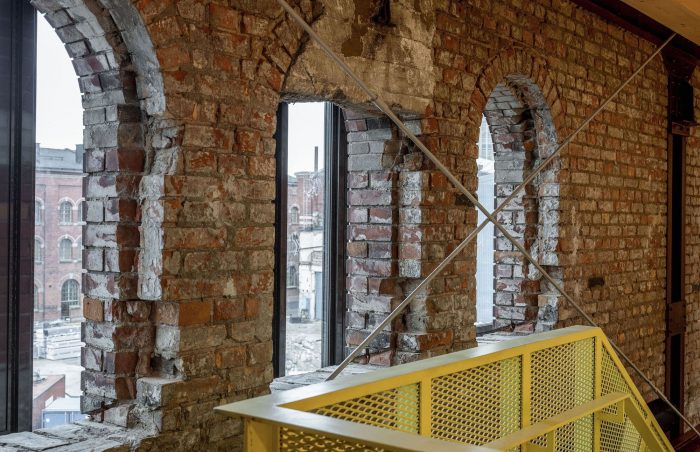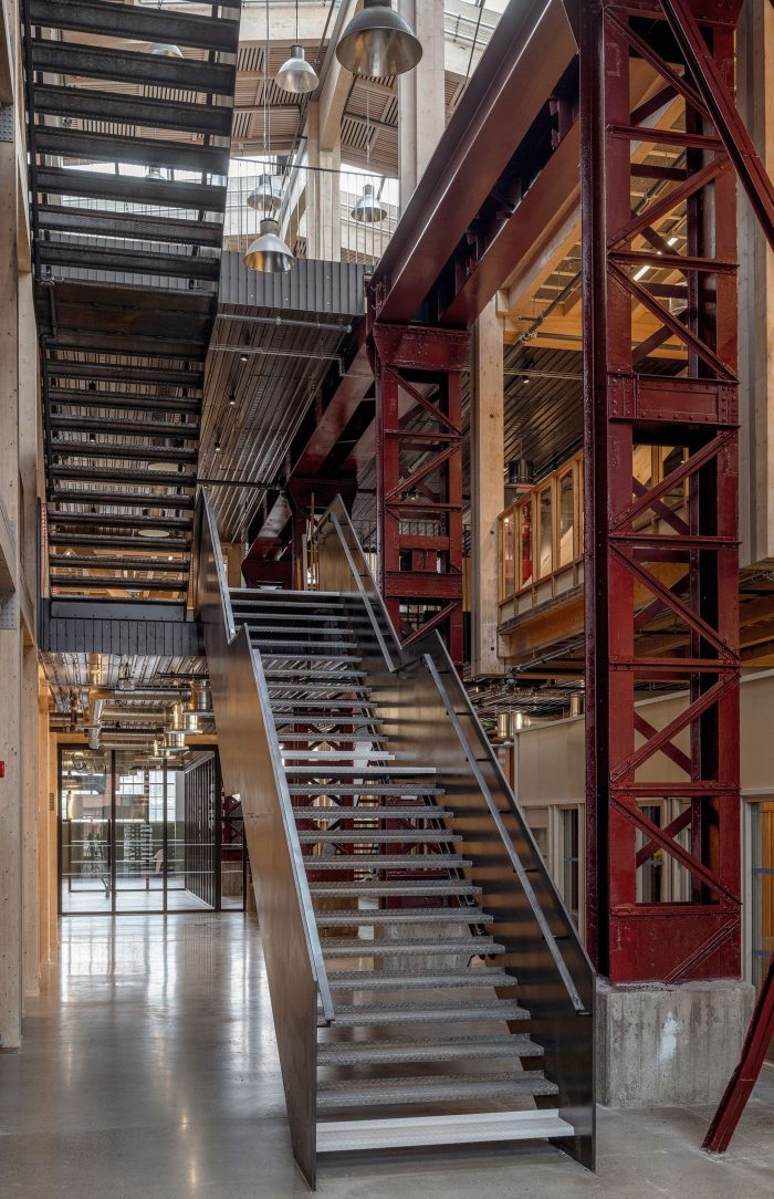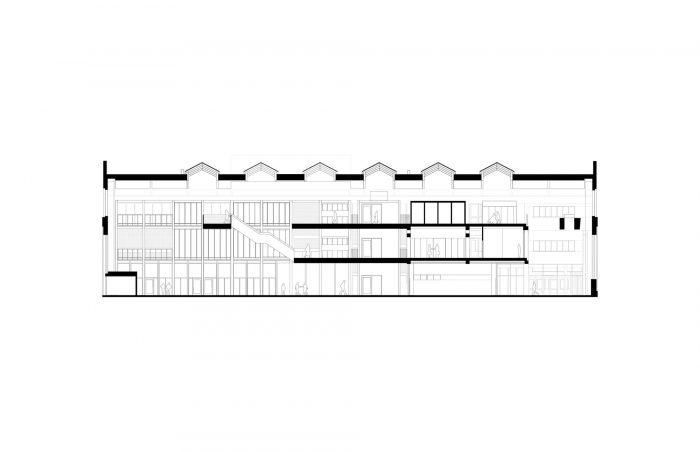 Original brick vaults sealed over the years have been re-opened and are once again prominent features of the building. The large industrial hall with an existing steel frame and traverse were once alive with busy ship component building activity. Today, the impressive volume is filled anew with new spaces that encourage creative use, social interaction, and collaboration.
