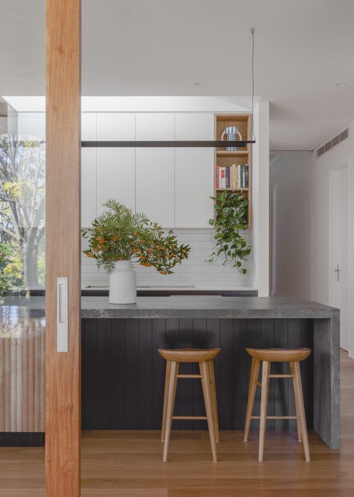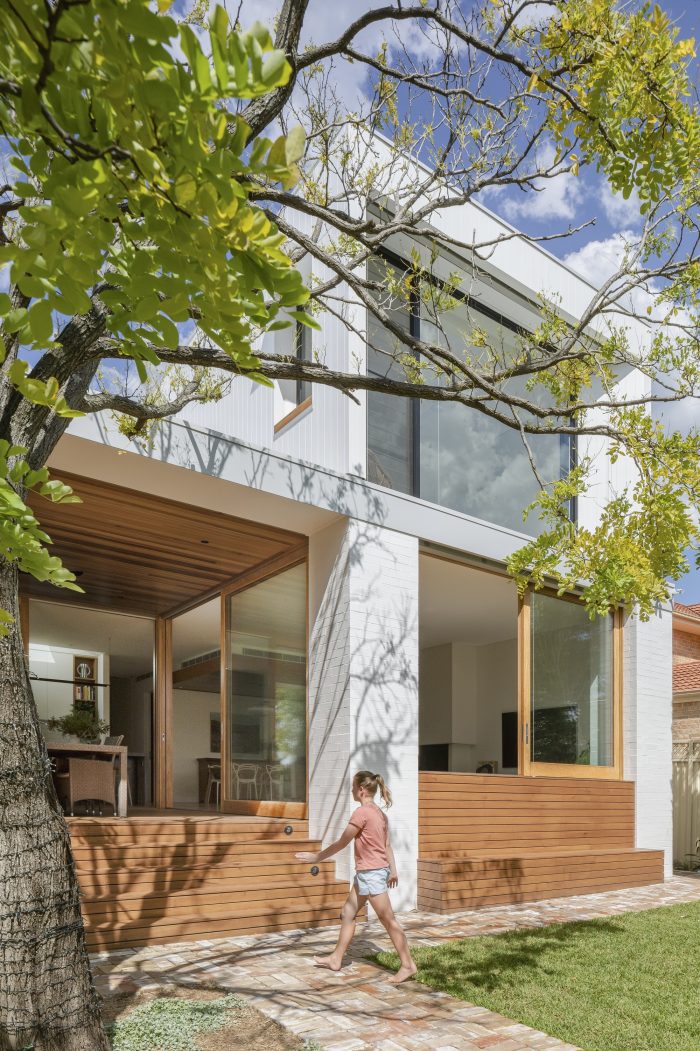 The brief was to create a warm and inviting family home. We kept the original structure of the bungalow and added a two storey addition to the rear that steps down the site to follow the fall of the land.