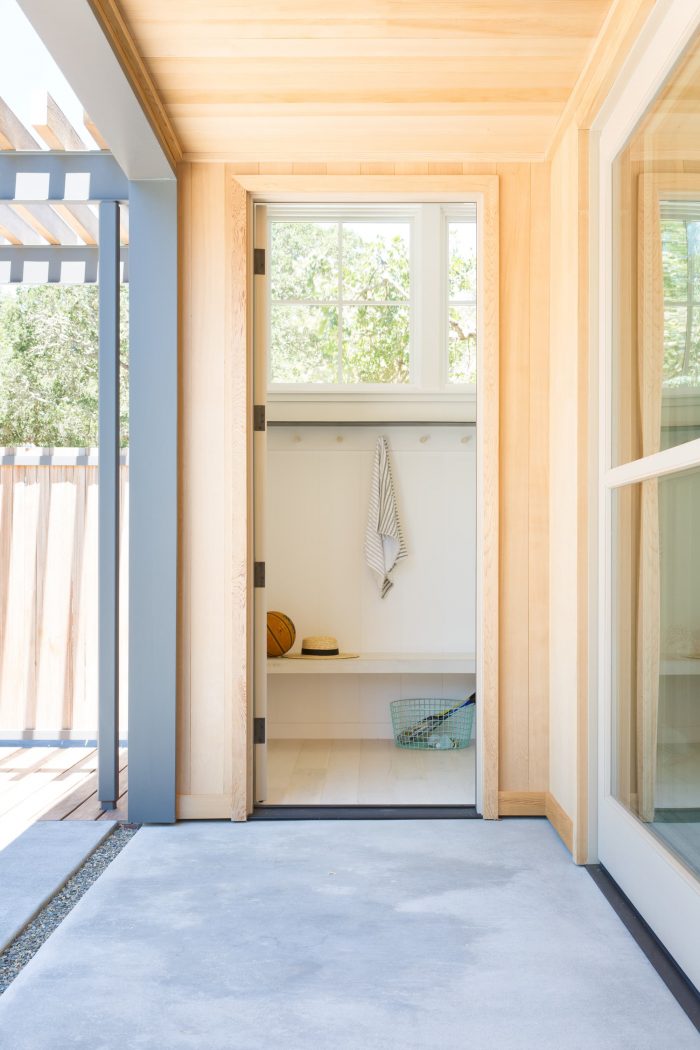 Composed of three iconic metal-roofed gabled wings that are connected by an open cedar lined arcade and a steel and cedar trellis - the house and a new pool and landscape design define an outdoor courtyard that is planted with four high canopied trees that provide shade during the hot summer months.