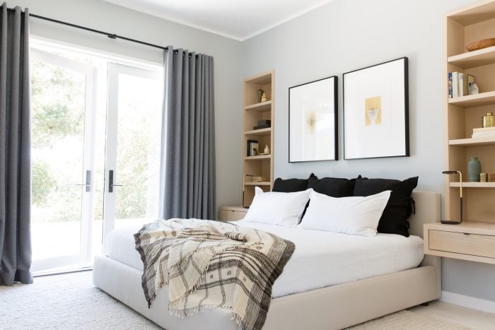 由三个标志性的金属屋顶的屋檐翼组成,由一个开放的雪松衬砌的拱廊和一个钢和雪松的棚架连接 - 房子和一个新的游泳池和景观设计定义了一个户外庭院,种植了四棵高大的树冠,在炎热的夏季提供遮荫。