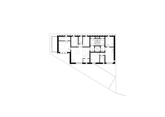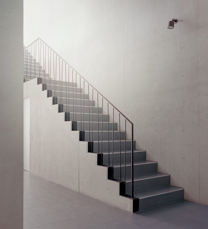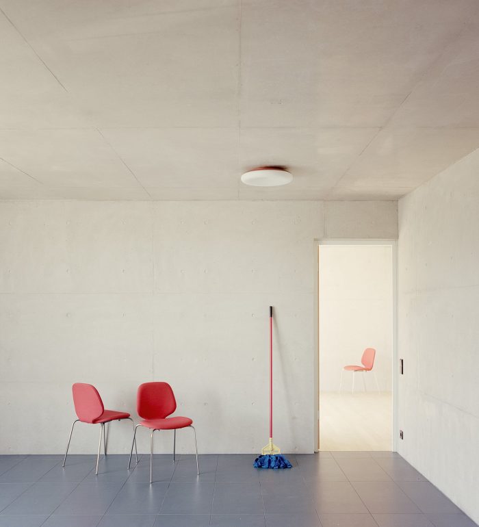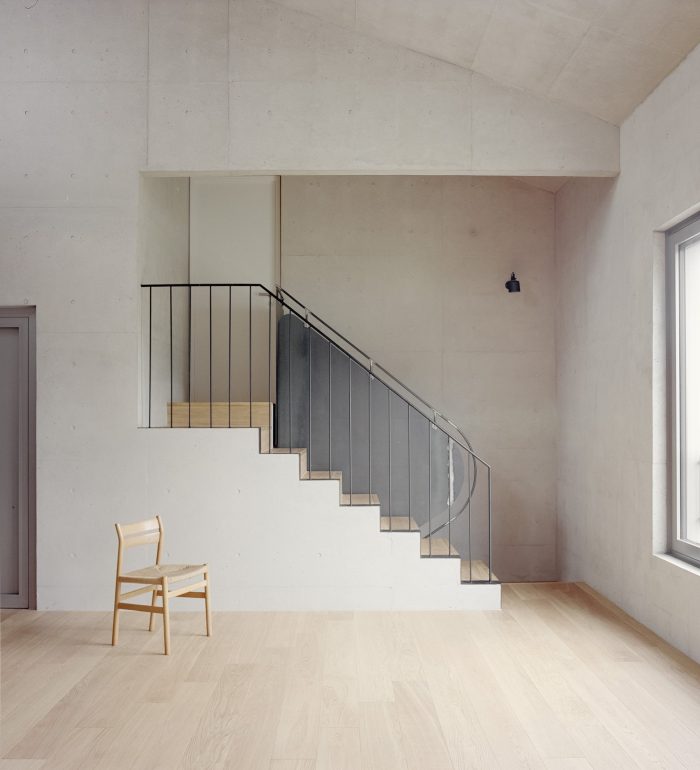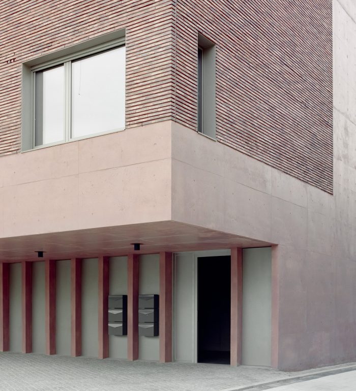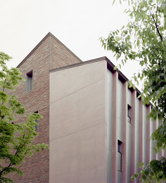 材料的选择反映了设计理念:两种不同的表面处理--面层混凝土和Petersen Kolumba K43砖--产生了清晰的体积形象,从而被解读为独特而统一。在内部,主要的材料是裸露的混凝土,留下自然和两种不同的地板饰面,木材和瓷砖。细节是由亚光黑铁制成的。