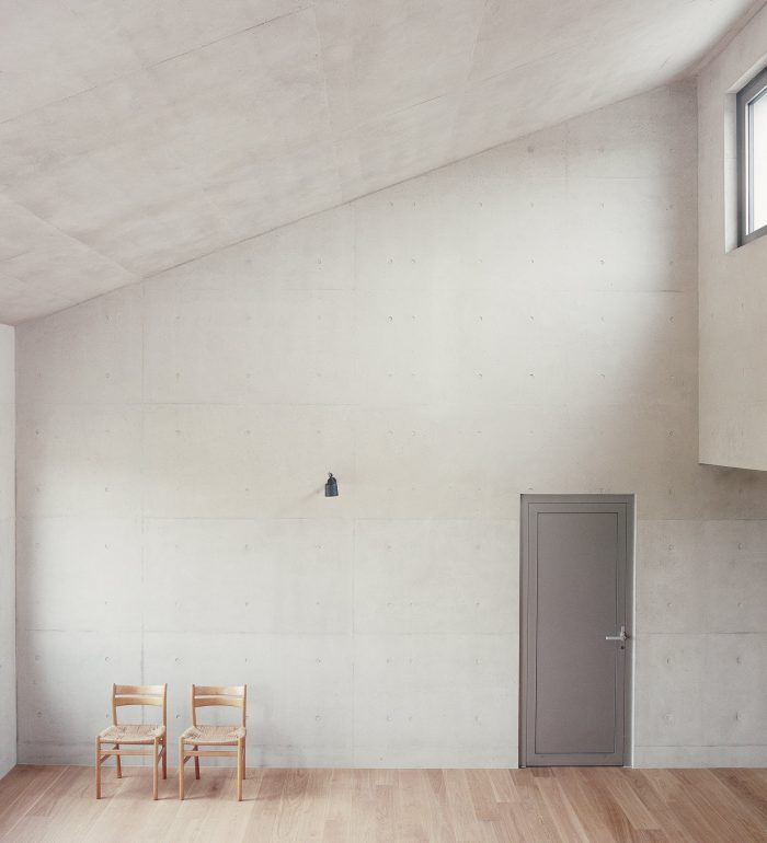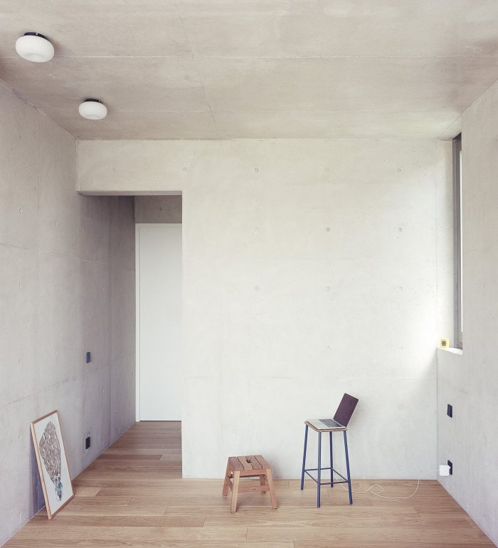 The choice of materials reflects the design idea: two different finishes - facing concrete and Petersen Kolumba K43 bricks - which generate a clear image of the volume that is thus read as unique and uniform. Inside, the main materials are exposed concrete left natural and two different floor finishes, wood, and tiles. The details are made of matt black iron.