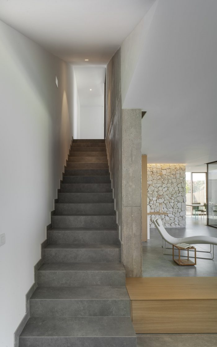 The inner level absorbs a major part of the project, the public spaces are arranged into a sole stanza that forms an “L” shape, allowing for intimacy in the bedrooms though without losing the connection between them. The rest areas are finished with a “U” shaped layout and continue onto the upper floor.