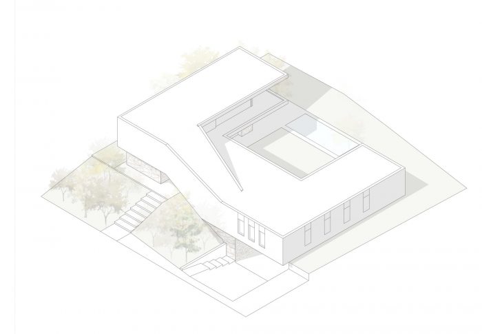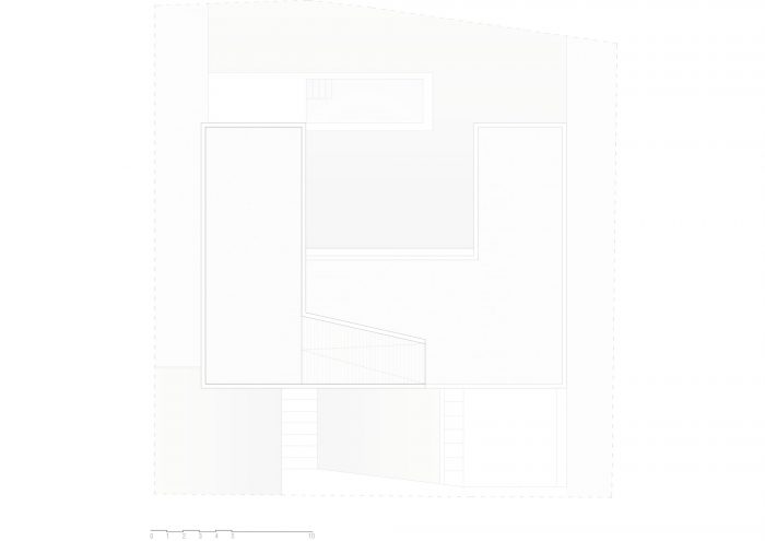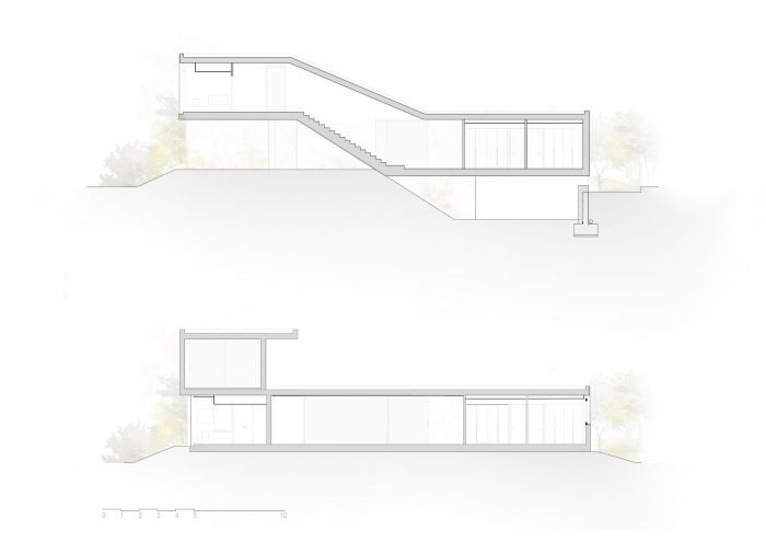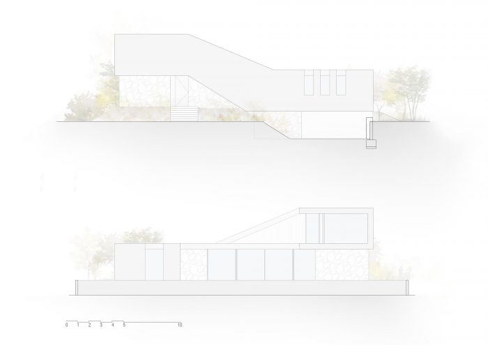 The property is located with the aim of utilising the inherent unevenness of the plot, subtly using the terrain itself for support, thus endowing it with a unique presence.