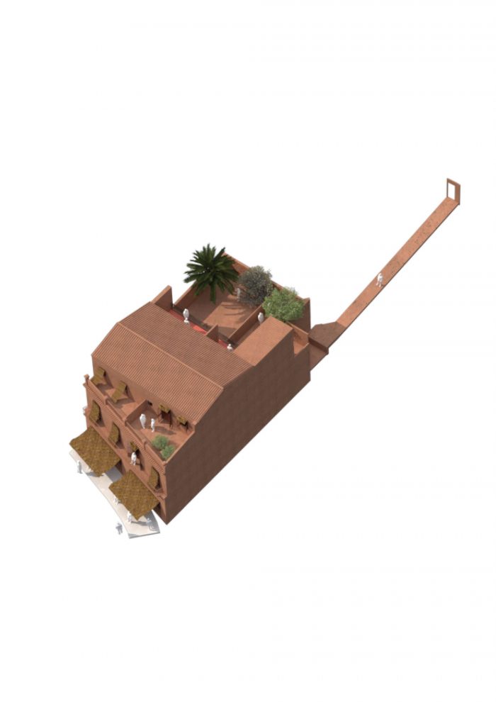 The following phases of the project will add two further buildings to the ensemble: the yellow Casa Virginia, and a small villa next to the Gomila Center, both renovations of existing neighborhood buildings.