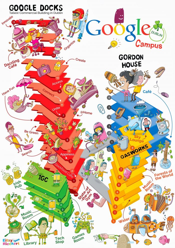 Google Docks. The newly constructed 'Google Docks' is the main campus building where each of the 14 floors represents the unique identity and strong values of Google.