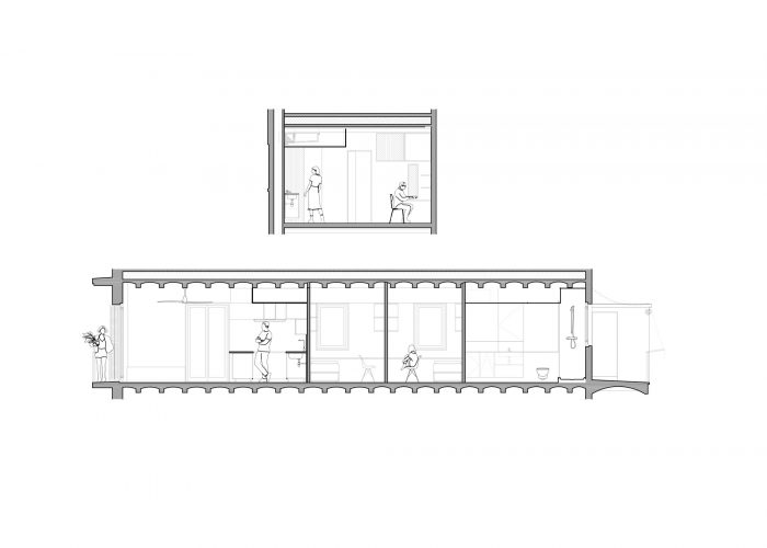Although the available surface area is reduced, each space is designed with precision to allow the interior routes to be fluid and to allow natural light to reach every corner of the house.