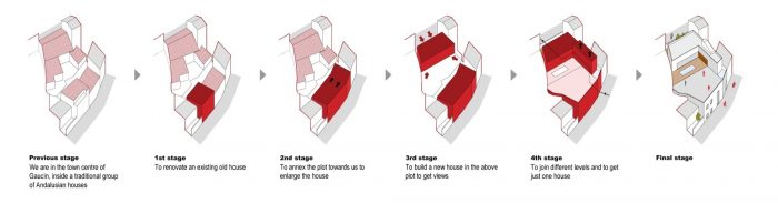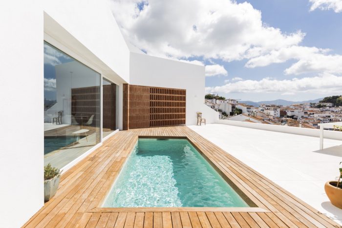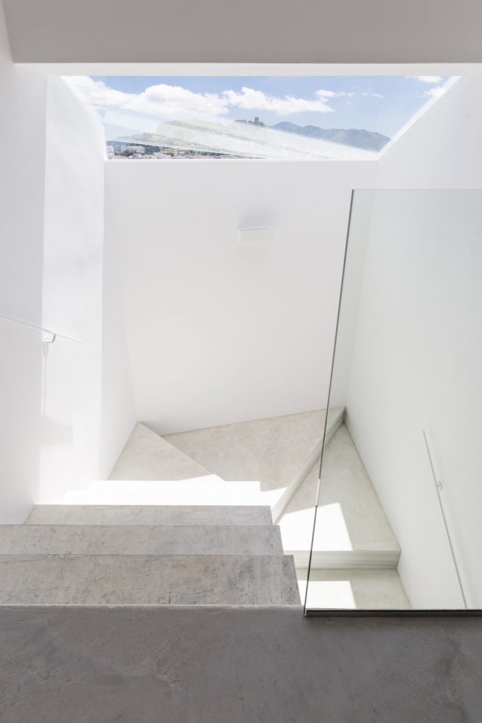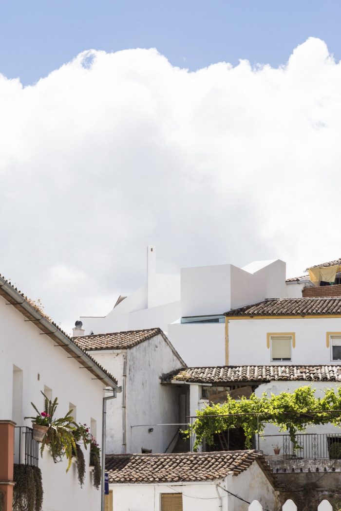 The Project is concluded with a overlook terrace on the roof of the living area. This space plays just with white planes,so common in Andalucian popular architecture, integrating the house with the neighborhood .