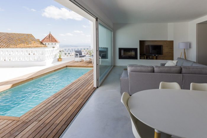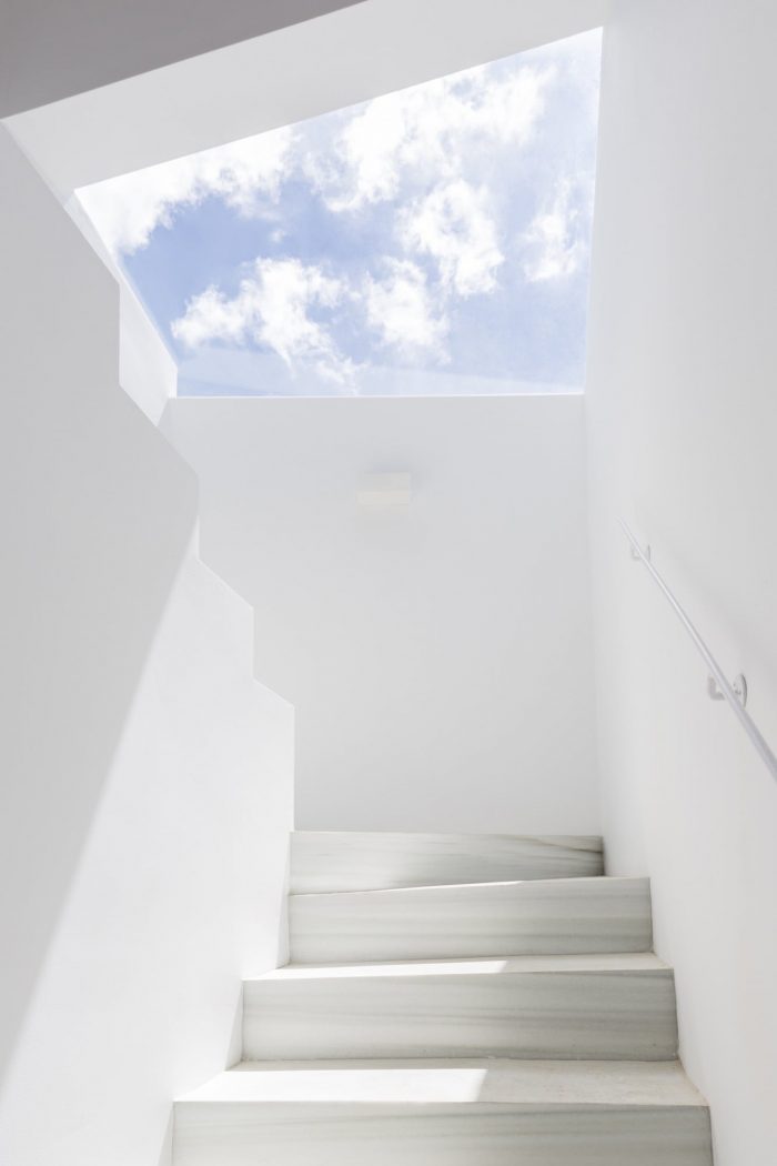 该项目最后在生活区的屋顶上设置了一个俯瞰露台。这个空间采用了安达卢西亚流行建筑中常见的白色平面,使房子与周围环境融为一体。