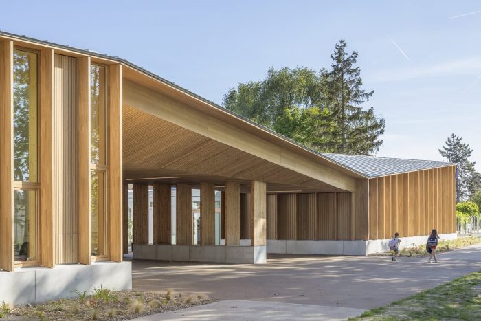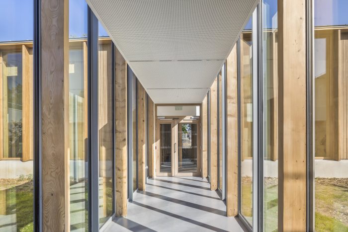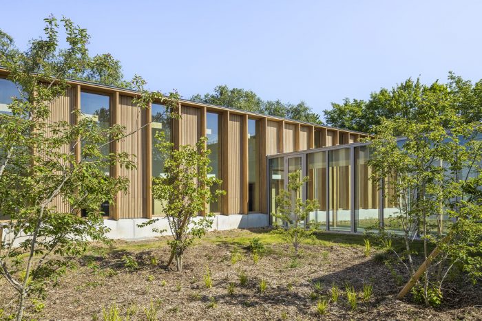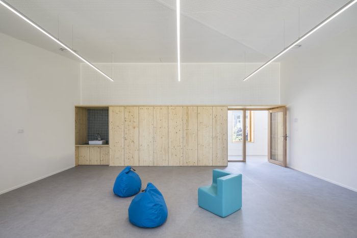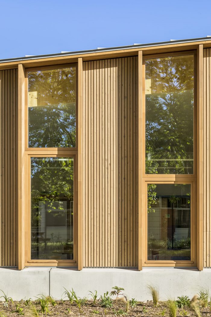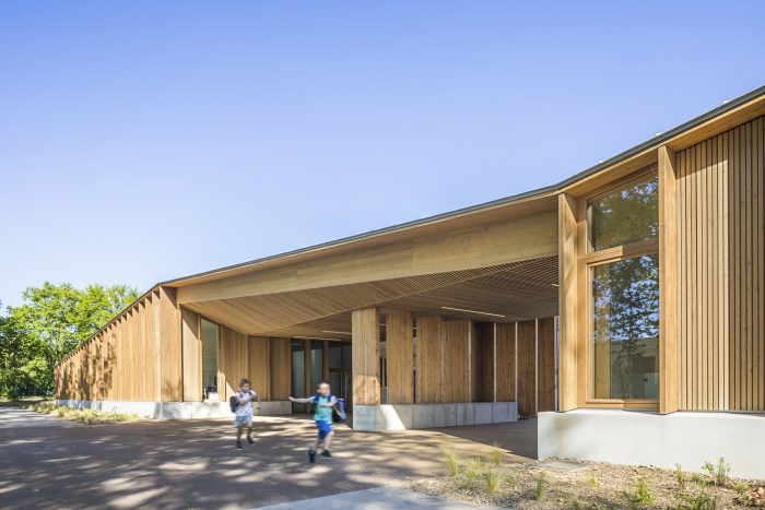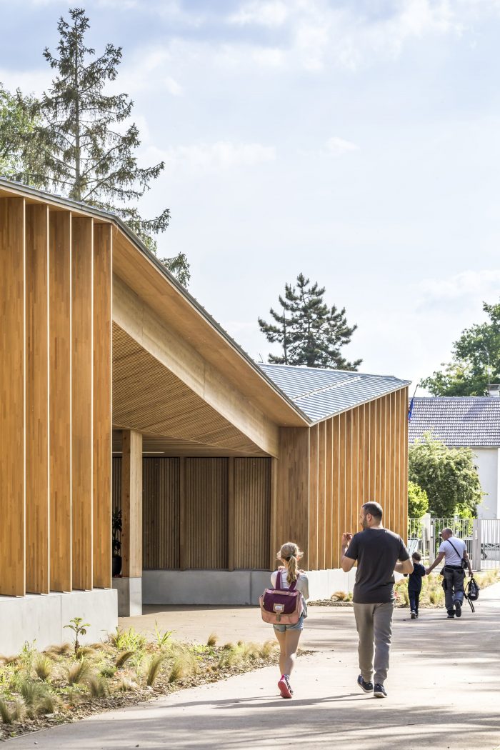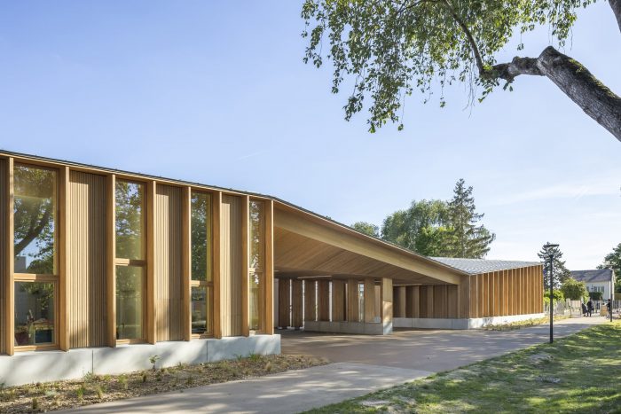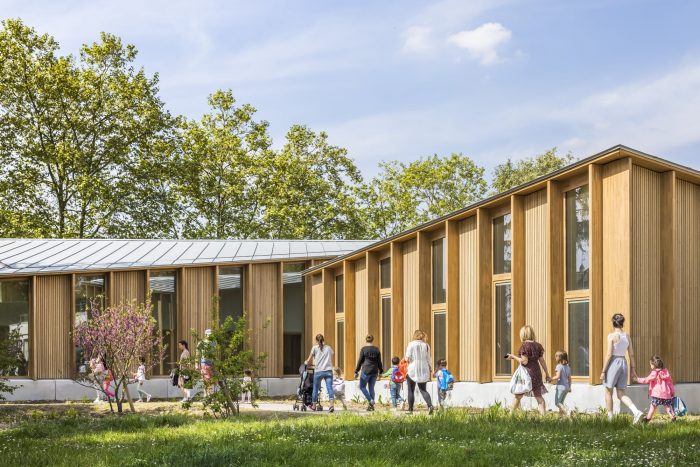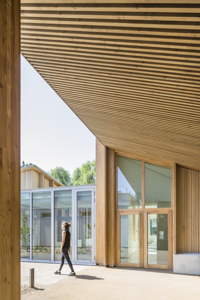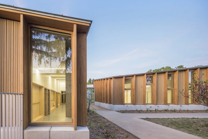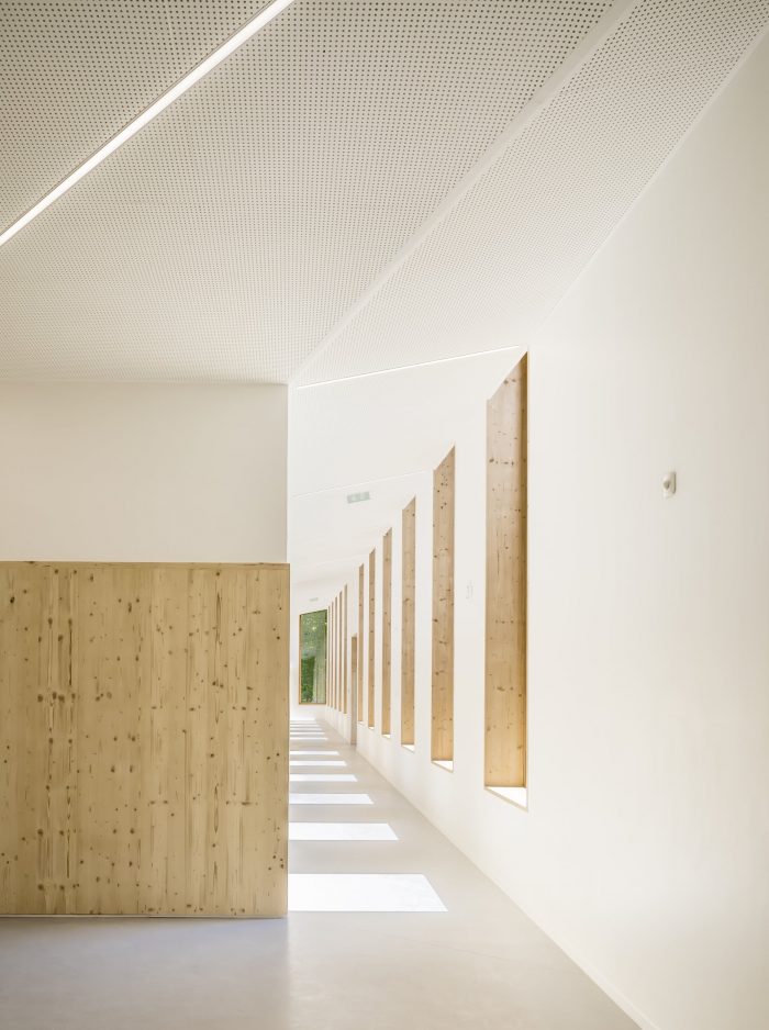 The interior spaces, bathed in natural light, are always in relation with the gardens. The wood brings a warm ambiance to those spaces dedicated to children. It establishes a strong relationship between interior and exterior to increase the integration of the building in its landscape site.