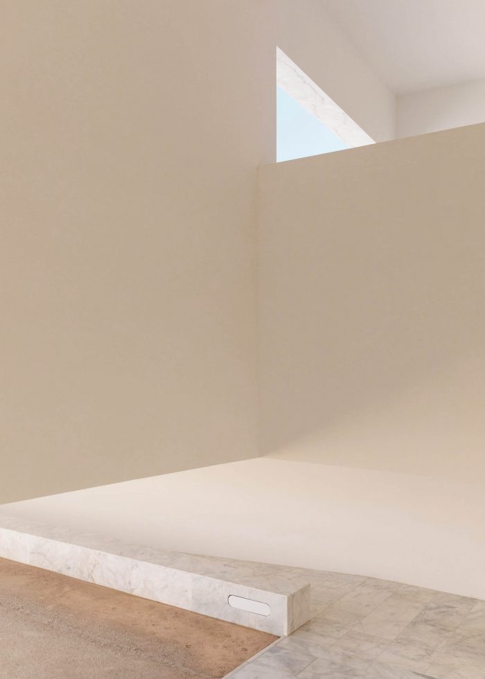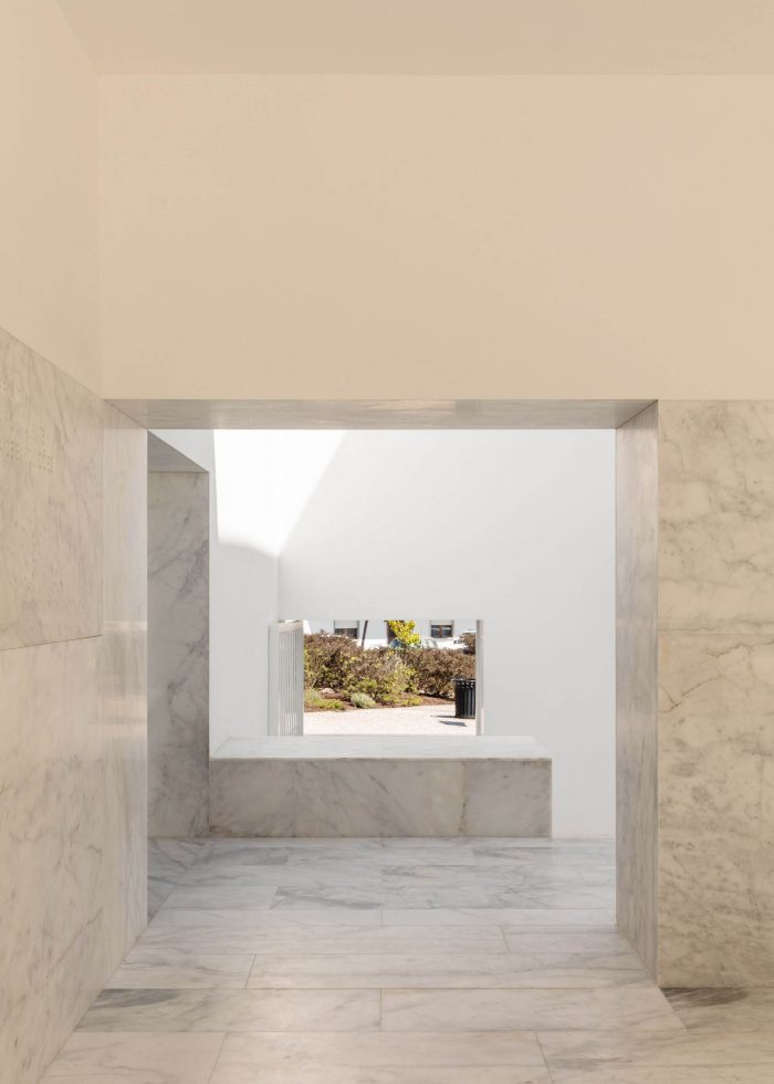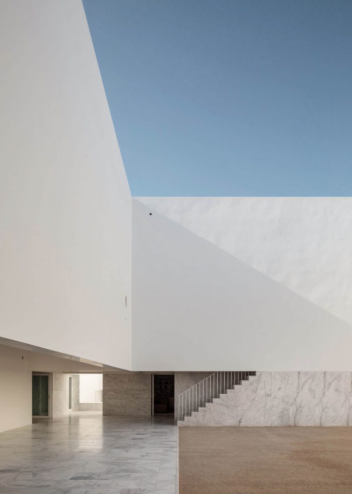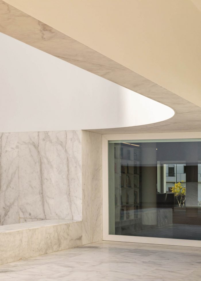 这套建筑,以其厚重的墙壁和南方的白色的抽象形状,试图保持神秘,并建立发现的路径,就像它所包含的书籍。