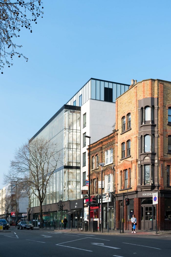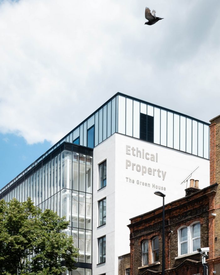 The Green House has been designed as an innovative, sustainable response to a derelict 1960s concrete frame building, bringing over 7,000sqm of affordable office space to environmentally and ethically minded small businesses in east London. Sustainable buildings attract sustainably-focused businesses as tenants, this is core to Ethical Property’s ethos. The 1960s building had been derelict for some time however the concrete frame and stripped brick façade were in a suitable condition to be salvaged. Set back from the building line of the street a strip of unoccupied land to the front created a lack of street presence along Cambridge Heath Road.