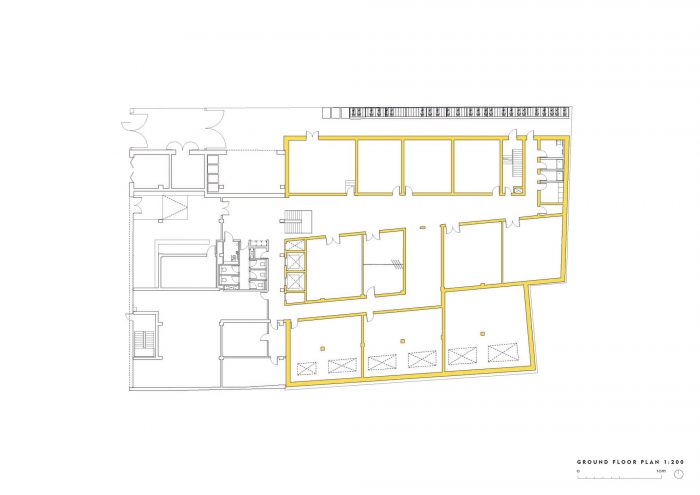 所有的服务都是暴露的。石膏板和吊顶系统的省略最大限度地减少了材料的使用,同时使服务的更换变得快速和简单。外墙是一种完全透气的、在实木纤维隔热层上的自色石灰渲染。不需要对外墙进行粉刷,也不需要定期维护。低用水量的卫生洁具最大限度地减少了水的消耗,并通过低能耗的照明设备减少了能源的使用。屋顶光伏发电为公共区域提供服务,屋顶上的野花草场为这个城市内部的场地带来了生物多样性。