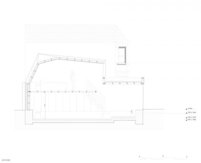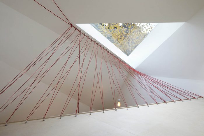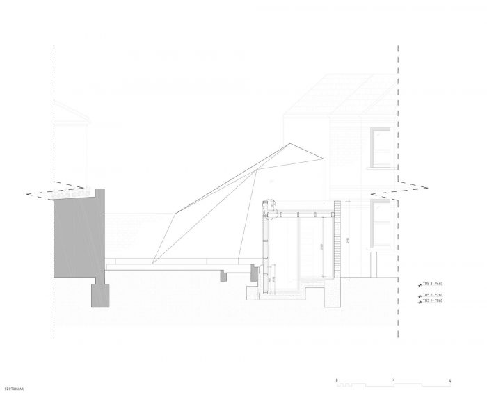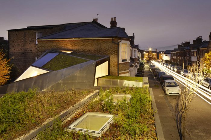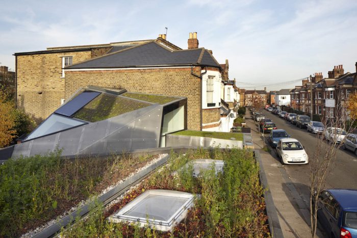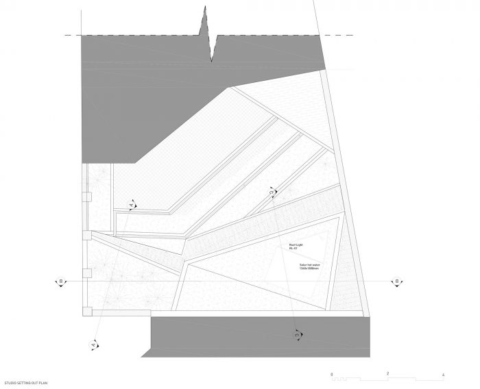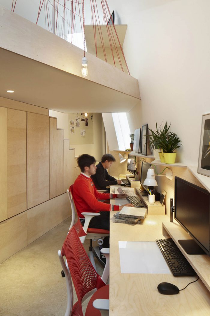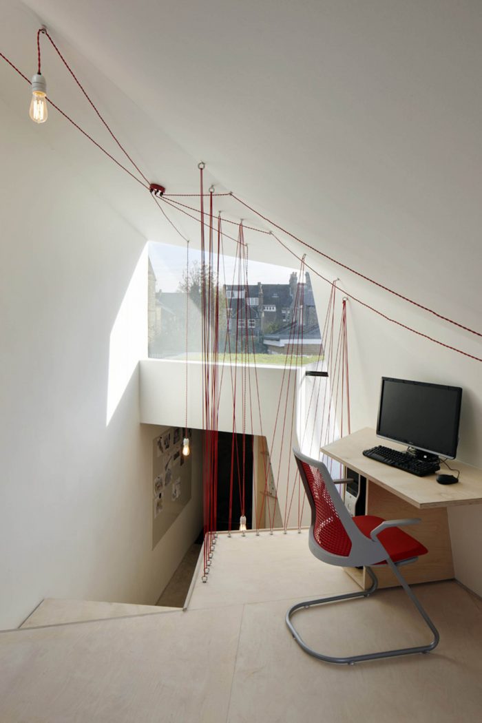 The studio’s shape and orientation has resulted from a detailed sunlight analysis minimizing its impact on the surrounding buildings and ensuring high levels of day lighting to the garden and work spaces.