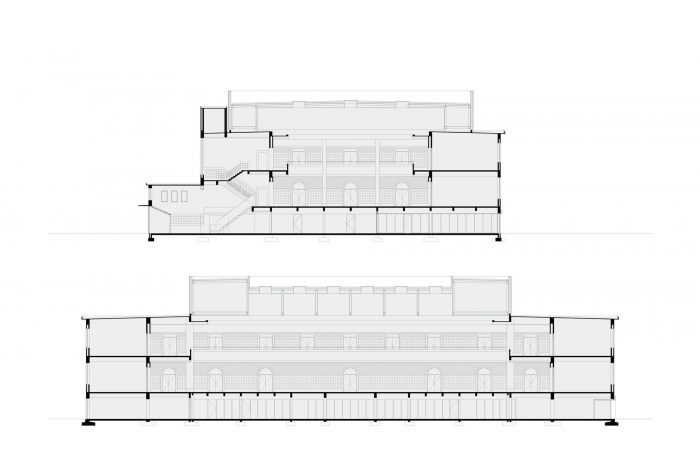 In line with this evolution, the entire width of the northern façade of the incubator is opened up on the ground floor and converted into an entrance hall. Despite the fact that, architecturally speaking, the latter is subordinate to the historical entrance on the eastern side of the building, this intervention is nonetheless aimed at expressing the creation of a ‘second front’ facing the town centre.