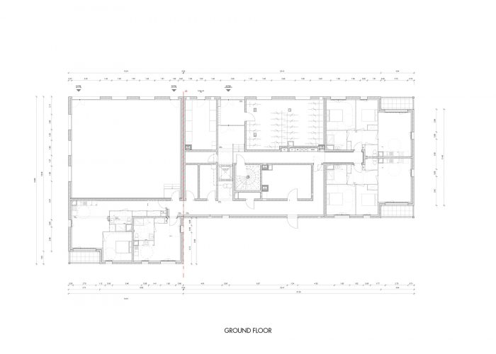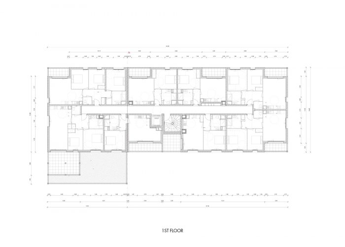在这一思想的延续中,建筑主体由混凝土结构组成,上面覆盖着暖灰色的染色剂,根据天气和暴露情况趋于红色。为了节省材料和耐用性,窗户是由木头和铝制成的,带有玻璃窗框。每个住宿区都有大的凉亭或露台。