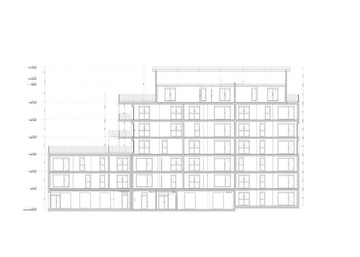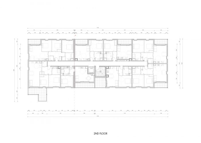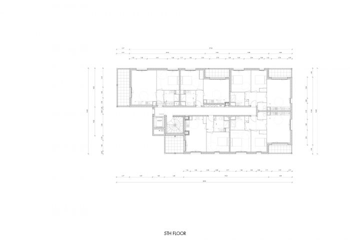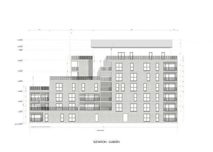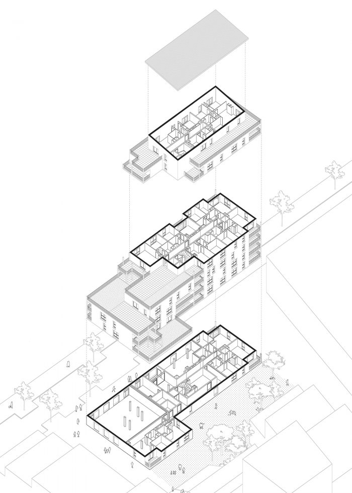 该项目(DP2地块)由38个住房单元组成,分7层开发。项目的体量被分解成看台/走廊,高度从第三层到第七层。建筑中的不同中断确保了视觉和景观的多孔性,它们引起了外墙的多重性。体积似乎是非常切割和解构的,以丰富该项目。