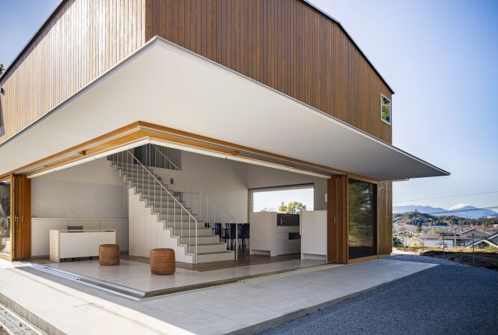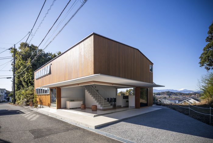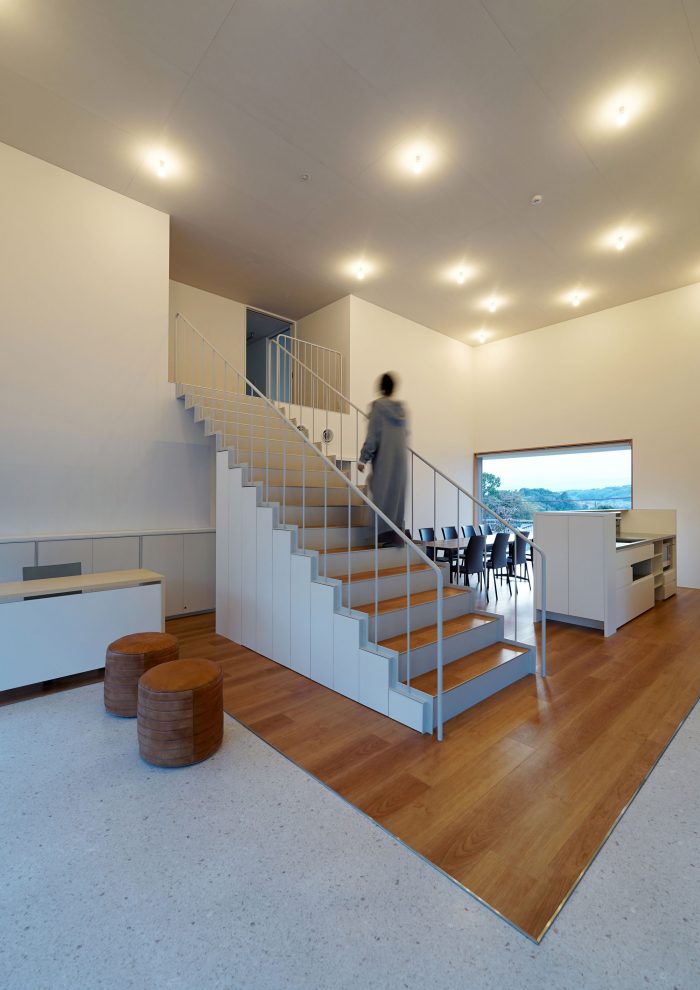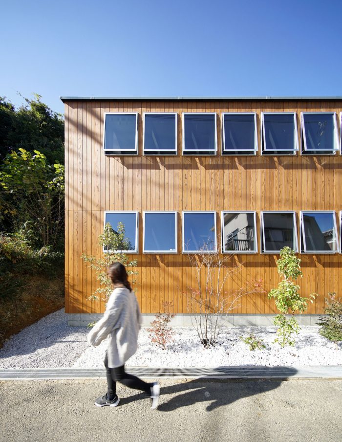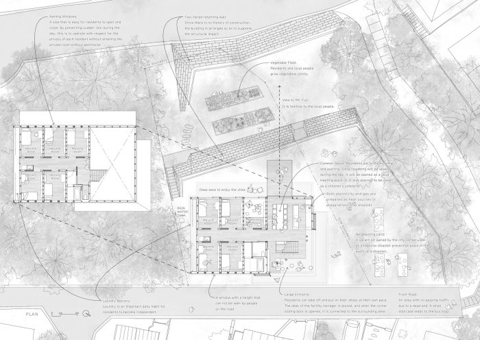 Welfare develops Community, and Community develops Welfare. Built on a hilltop-looking Mt. Fuji, this is a group home for people with intellectual disabilities, under a big umbrella where everyone in the area can easily gather. The operator is trying to make a new welfare facility that is deeply rooted in the local community, by operating this not only as a group home, but also as a children's cafeteria, a meeting place for senior clubs, and an evacuation place. To that end, architecture sought a way of building that would foster connections with the surrounding area beyond the site boundaries.