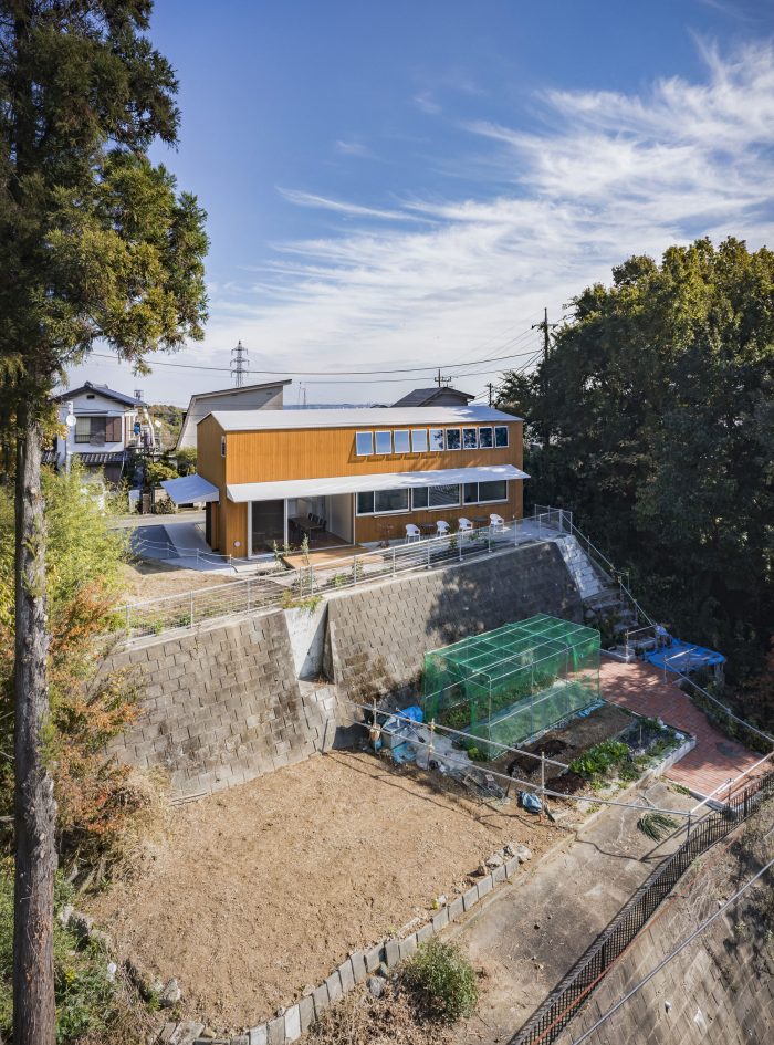 A series of awning windows like a cruise ship not only gives a sense of security to the private rooms but is also a device for residents who want a calm life without having to panic even in the sudden rain. It is equipped with a rainwater tank, a hand pump, an emergency generator, and a gas/electricity stove for cooking so that it can be used as a welfare shelter in the event of a disaster. By using rainwater for the vegetable fields set up on the site, it is planned to make the best use of disaster prevention equipment on a daily basis with enjoyment.