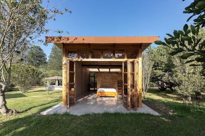 The land is located in Guayllabamba, a rural parish one hour away from Quito’s city, characterized by being a green spot within a dry valley. The request. A couple conformed by a historian and a film director, in the post-pandemic stage, they saw the need to find and build a space to disconnect from the city and reconnect with nature, a space to rest and work during periods of isolation and weekends also. In their family land, full of vegetation and must of it avocado trees, they found the ideal place to establish their new space.