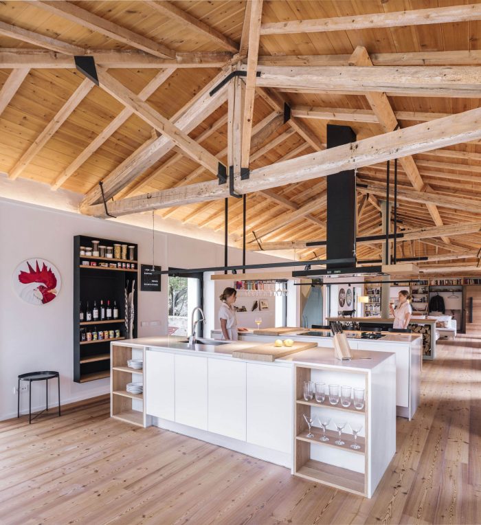 对这个项目的干预是基于对现有建筑的尊重和保护,为此,屋顶被保留,北面和西面的外墙被修复,尽管开口被修改得更加有力,以寻求该地区典型的农村建筑和其新的、更现代的用途之间的对话。东部和南部的外墙,鉴于其糟糕的状况,被全部替换。南面的立面完全向花园开放,寻求内部空间与自然环境的关系,而东面的立面则呈现出明显的全空节奏,产生了一种更有控制力的内部-外部的视觉连接。