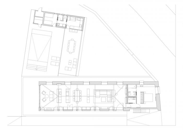 该项目包括对现有建筑的翻修和创建新的建筑,以完成这个特殊的房子的方案。现有的建筑附属于一个较大的建筑,并通过一个大的有盖通道与之分开。虽然它被用作住宅,但它最初是一个牲畜的马厩,这反映在它简单、朴实的建筑和一个非常基本的建筑系统,基于承重墙和用瓦片覆盖的木梁屋顶。