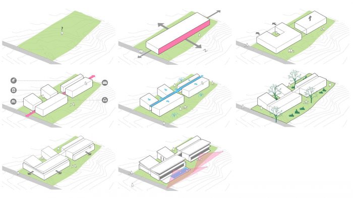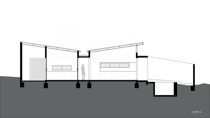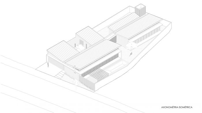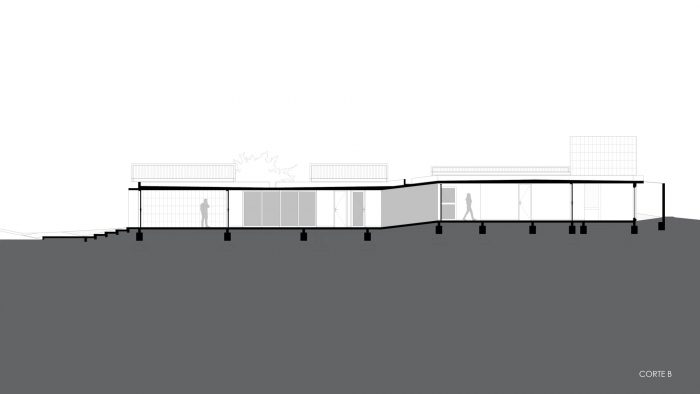 The project is structured longitudinally to the land, with the main rooms facing north, which allows, through the galleries, to regulate the solar incidence, contributing to thermal comfort inside, added to this, the ability to generate natural ventilation crossed linking both courtyards.