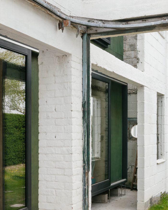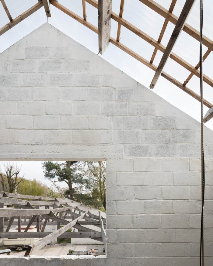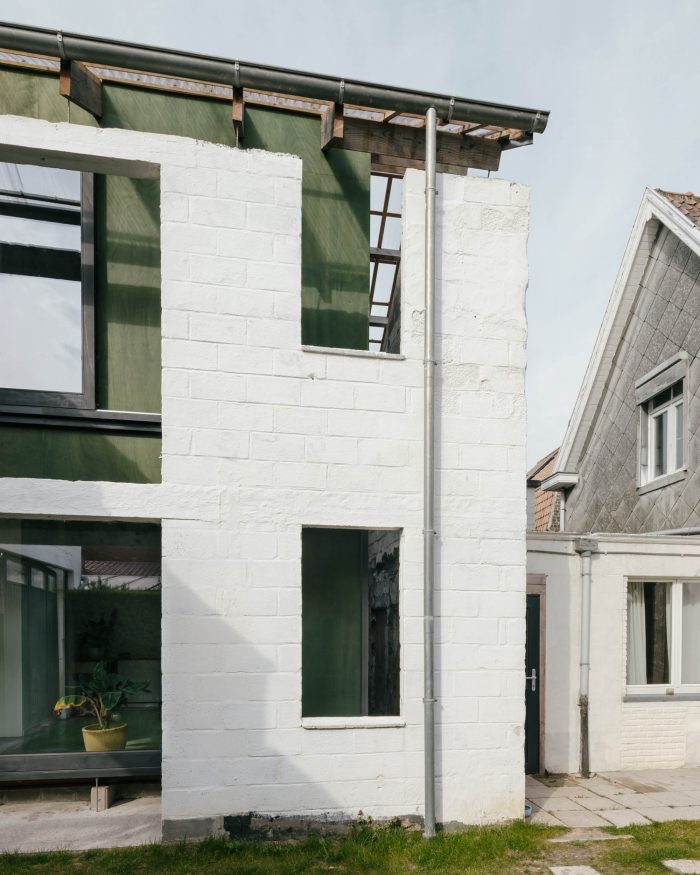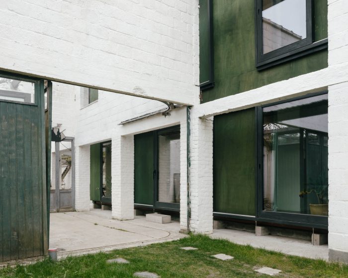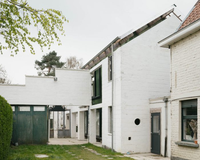 By disconnecting the new volume from the old structure, the existing walls work as a screen between the home and the imposing outdoor spaces. The new house consists of two floors that each has two rooms with a central serving core.