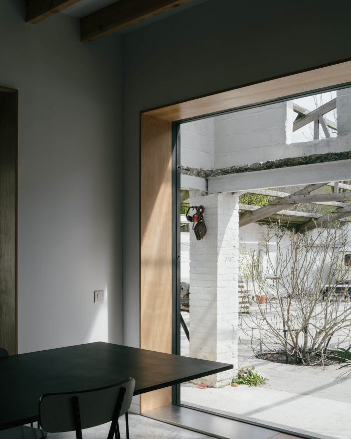 A minimal floorplan that can be expanded by the covered outside spaces of the shed. An intense dialogue is created between this rational plan and the existing joinery.