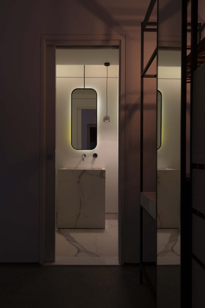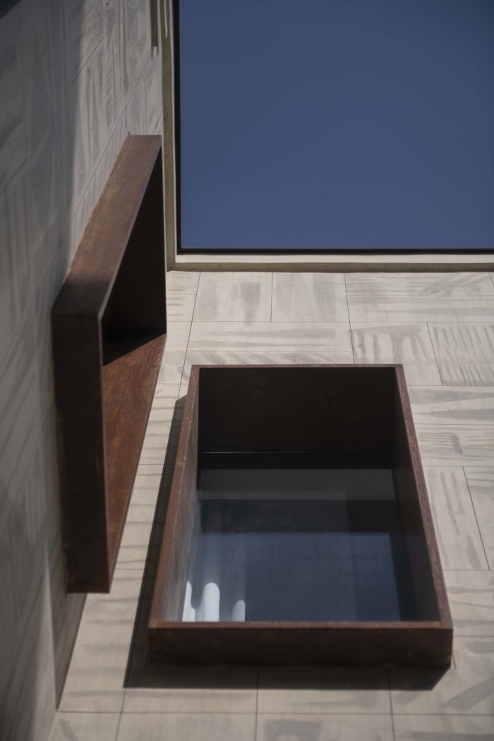 新的体量创造了这个项目的花园、凹陷的庭院、餐厅的一部分和画廊。这些新的体量也渗入到原来的建筑内部,将新的功能带入内部,同时保持其原有的体量和结构。东立面增加的中性体量被用来容纳酒店的浴室,并上升到屋顶,形成酒店的多功能空间。这个空间提供了周围地区的全景,同时在街道上保持隐蔽。在扩建工程中,加入了金属框架,以减少内部和外部之间的界限。这些框架界定了画廊的入口,并使画廊和Lolagar Alley之间的边界透明。这些框架也被用在建筑的外墙上,为酒店客人提供更多的光线和视野。
