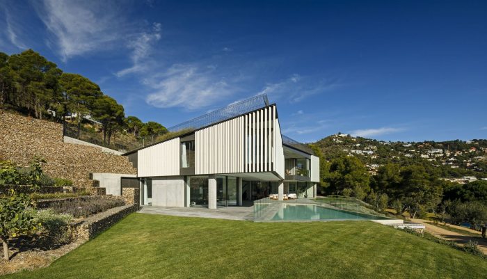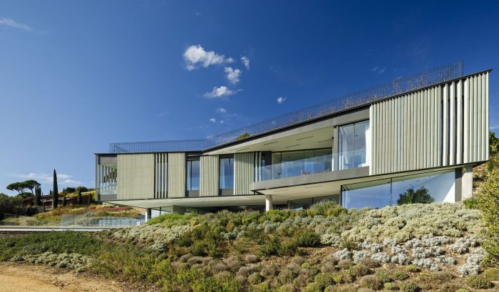 The Happy House is a private house that sits on the slope of Aiguablava, in Begur (Girona – Spain), overlooking the natural cove. The principles for its design are based on sustainability and respect for its immediate environment, from its integration into the terrain and the landscape to its energy efficiency and low carbon footprint.