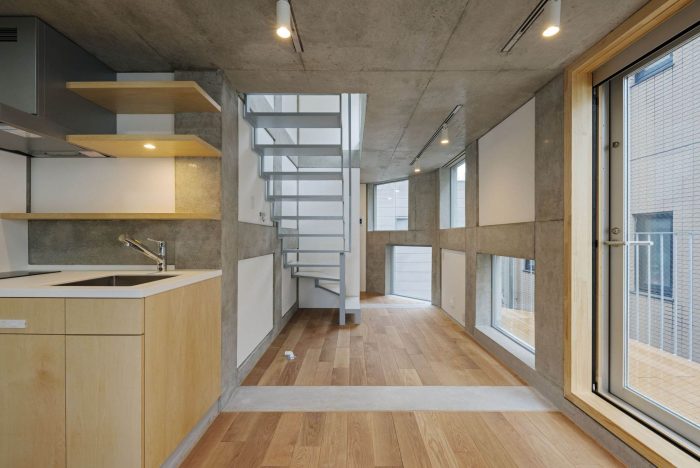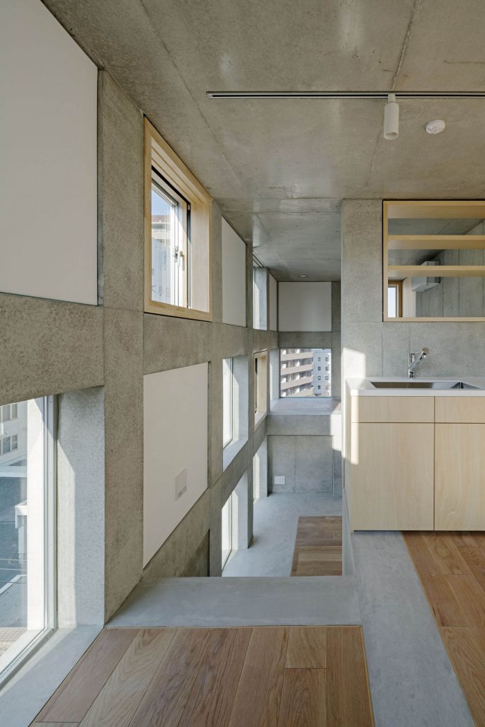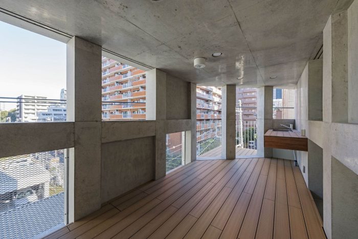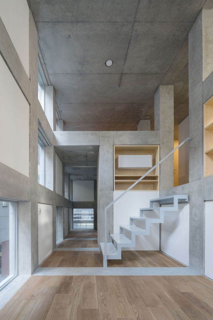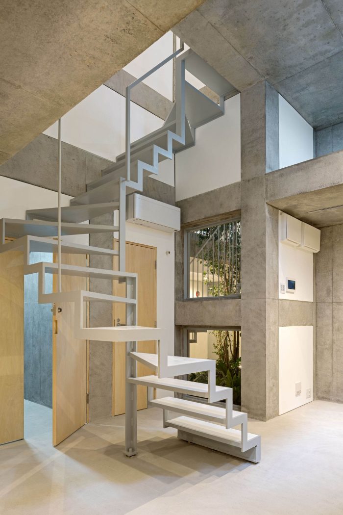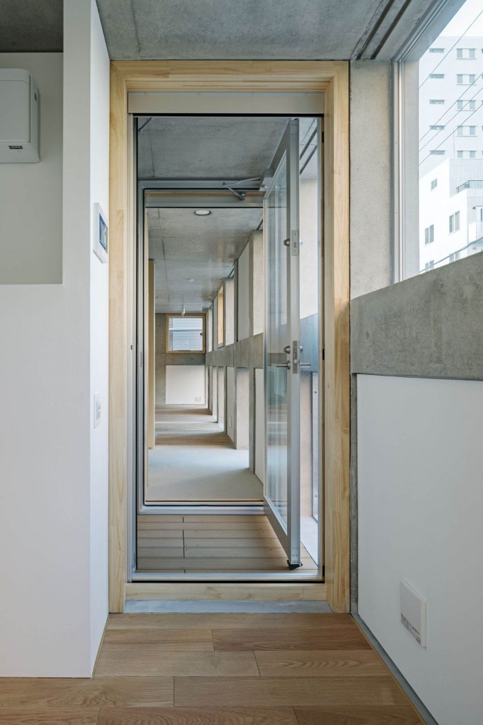 Meguri-doma. "Meguri-doma(一个有盖的楼梯间/公共走廊)"的设计是为了容纳阳光,让微风流过内部的露台和生活空间。通过这样做,楼梯间成为一个具有室内和室外氛围的流动空间。