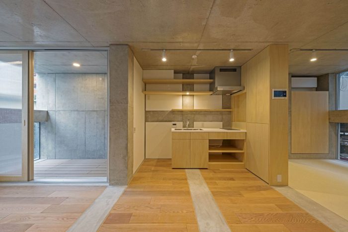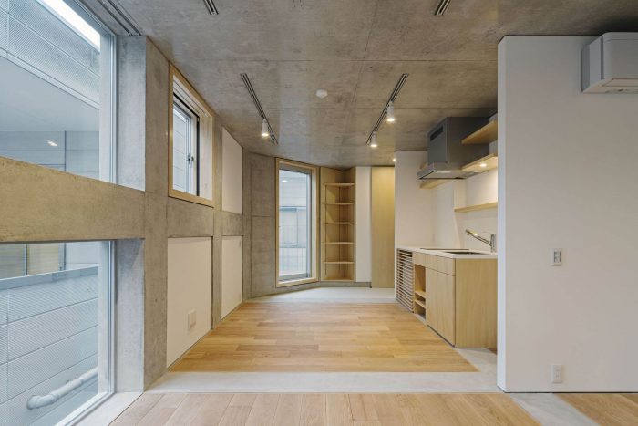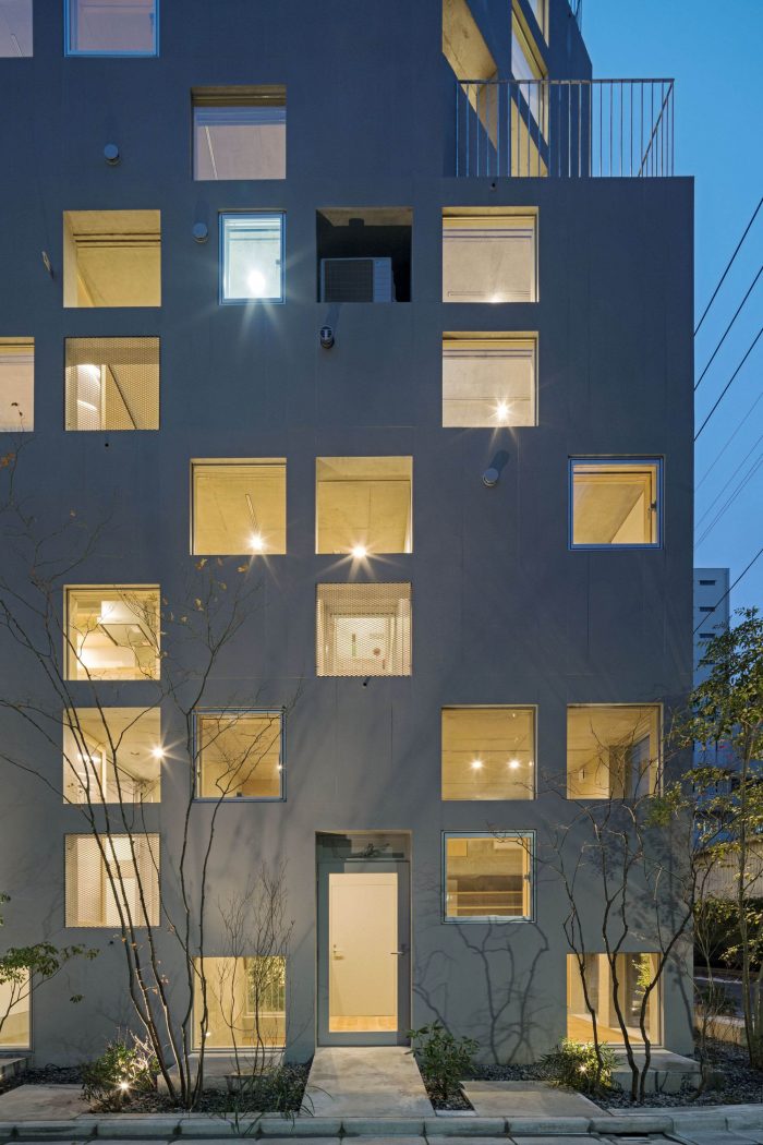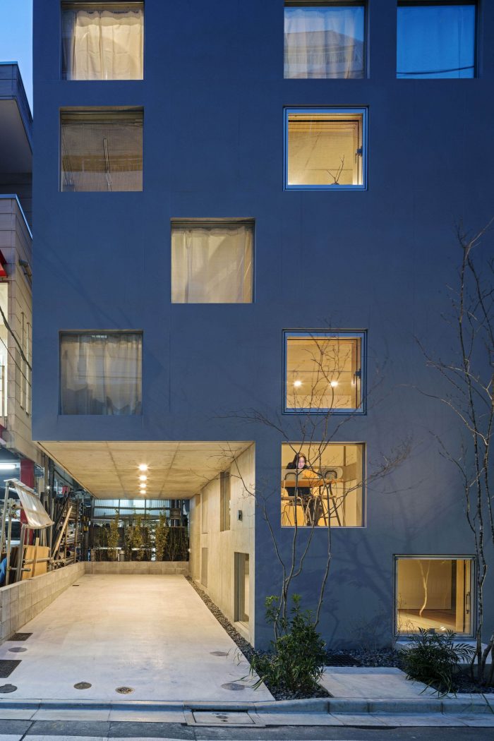 A big house. An owner-occupied rental apartment building typically has its owner’s penthouse above the rental units. Hatsuse Mita is also an owner-occupied property with several rental units, but its spatial organization is much different. The owner's family was forced to move out of their former residence due to the area's redevelopment project and they needed a new home that can adapt to changes in their family structure and society.