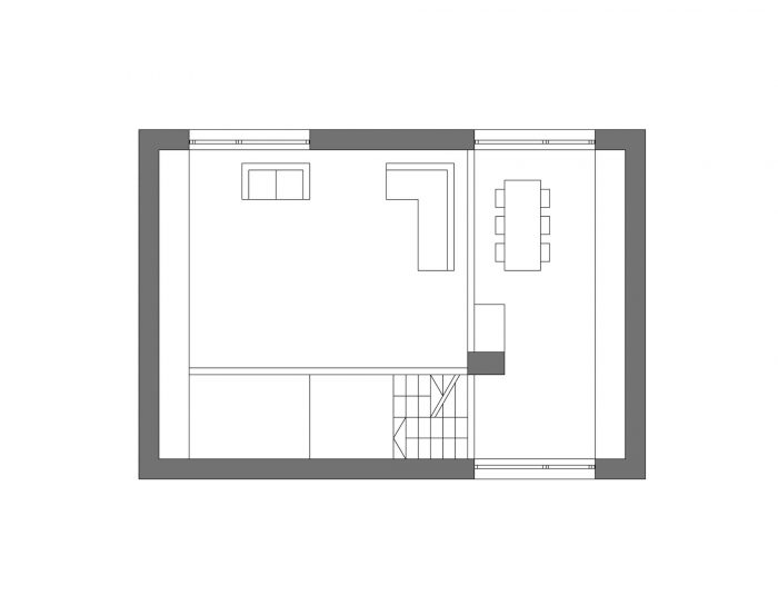 The design is based upon two by three squares with a side length of 350 cm. All major rooms have the proportion of one to one or one to two. Despite the clear organisation in the plan, the building develops many surprising spaces, it is equally simple and complex, as well as playful as strict.