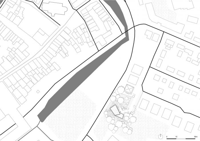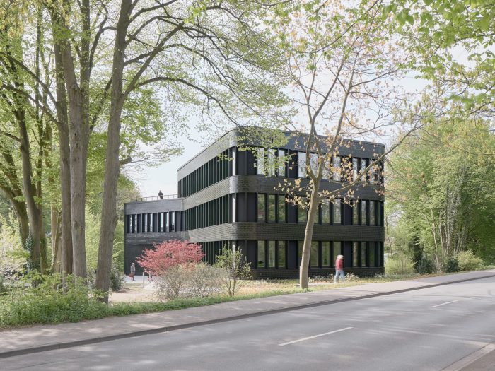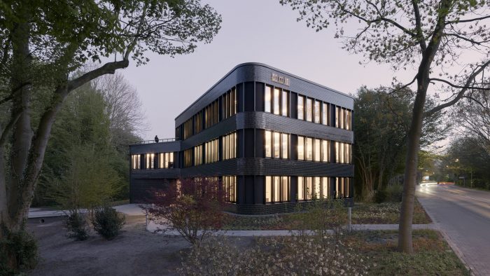 Embedded in a dense mantle of trees and shrubs along the historic Schiffergraben, the new headquarter for the local real estate company HBI is situated right opposite Buxtehudes old town and a surrounding small-scale residential development area. The natural green outdoor defines the design of the office building. The building becomes a "house in the clearing", embedded in a natural forest area. The homogeneity of the distinctive solitaire is broken up by generous window areas with delicate window profiles, giving it lightness and translucency.