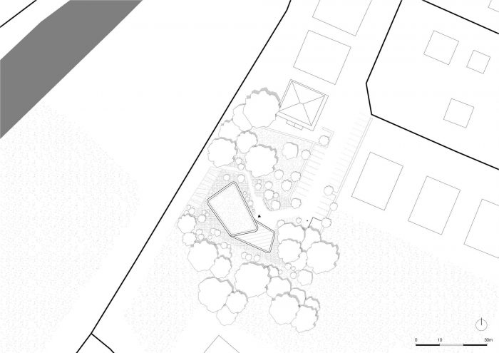 当地房地产公司HBI的新总部坐落在历史悠久的Schiffergraben一带茂密的树木和灌木丛中,就在Buxtehudes老城区和周边小规模住宅开发区的对面。室外的自然绿色决定了该办公大楼的设计。该建筑成为一个 "空地上的房子",镶嵌在一个自然森林区。独特的单体的同质性被宽大的窗区打破,精致的窗型使其具有轻盈和半透明性。