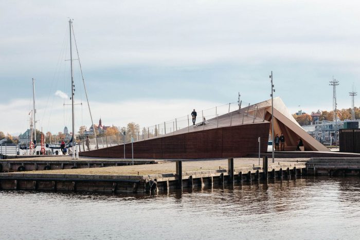 The Helsinki Biennial Pavilion, located at the South Harbour of Helsinki, serves as the entry point to the Helsinki Biennial art festival that is held on the nearby Vallisaari island. The ferry to Vallisaari departs from a pier adjoining the pavilion. Accessible all year round, the pavilion provides a public open-air urban living room space where one can pause and enjoy the presence of the sea in the heart of the city.