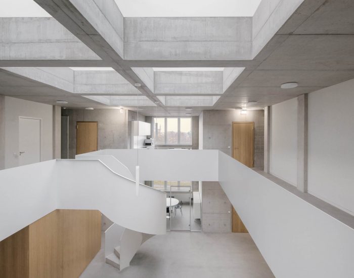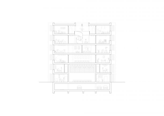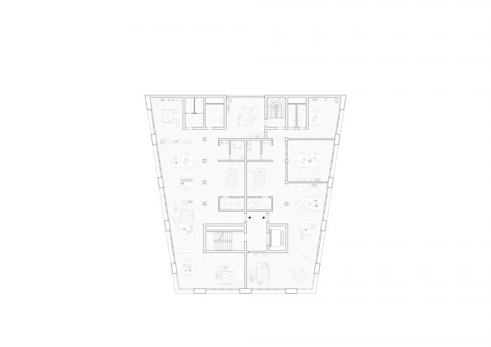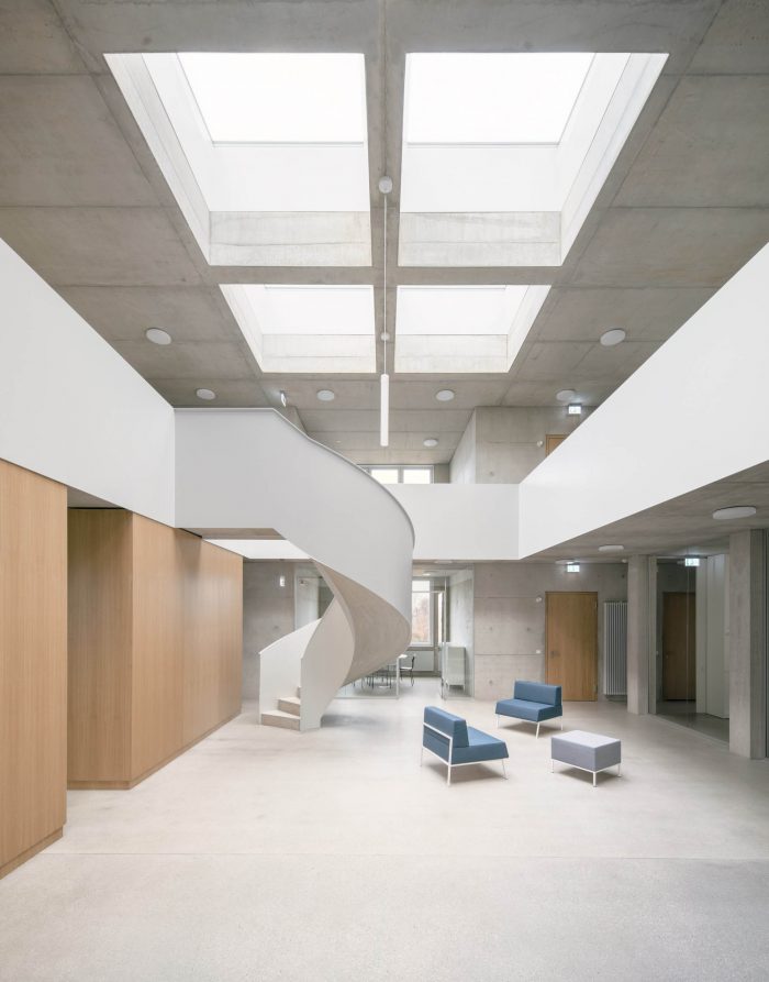 Our task was to design a building for a joint building venture composed of various social-democratic institutions, their roots stretching back over decades, indeed in part over centuries. How to start? By talking. By talking a lot: with the one institution and then with another one, and then with a third, and then back to the beginning again. One meets wonderful people and realizes that they all want the same thing: a commonplace that emanates a spirit of solidarity and collectivism.