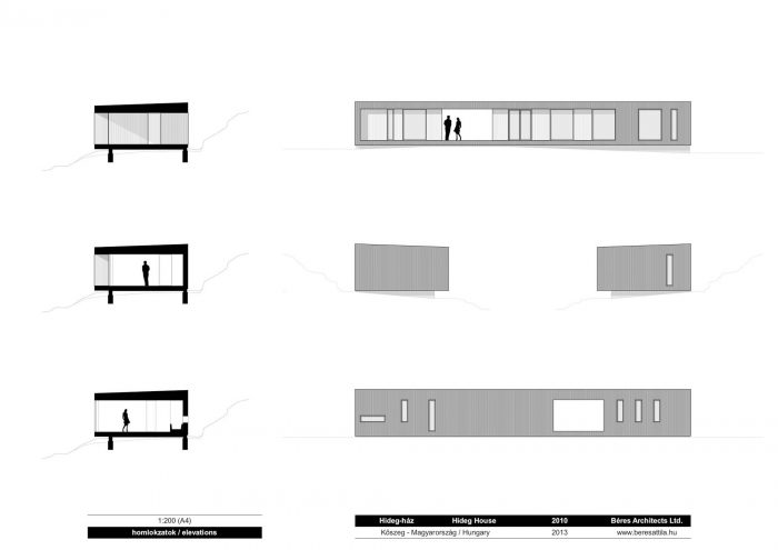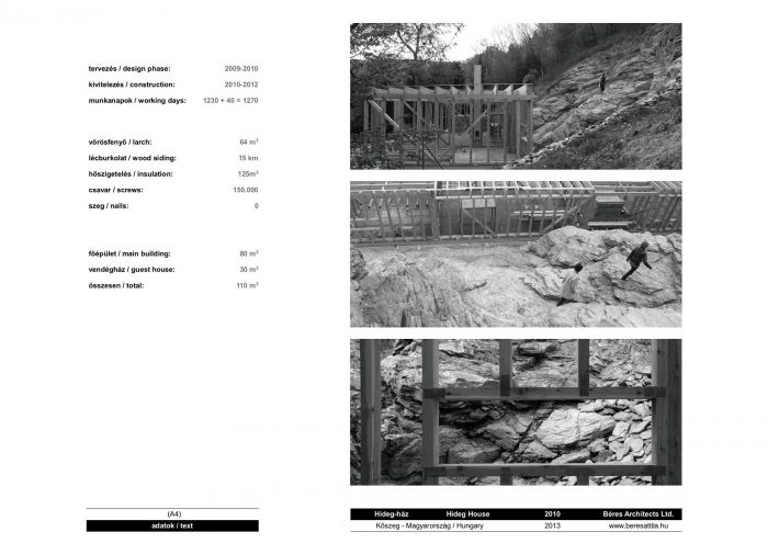Hideg-ház is the first project realized by Attila Béres and Jusztina Balázs. Thir young architecture firm started the design of this building in 2009 when Mr. Hideg noticed Attila Béres in Wallpaper magazine's Graduate Directory – an annual list of talented young architects. Detailed design and construction of the cabin finished in 2013.