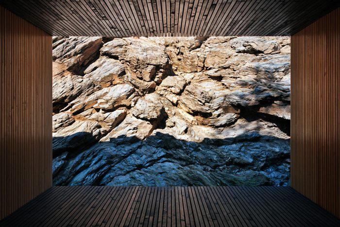 这个地方在几百年前曾被用作采石场,所以裸露的岩壁是环境中最强大的元素之一。为了全年获得足够的阳光直射,并接近雕塑般的悬崖,该建筑被放置在沿山谷底部的道路上方约10米处。