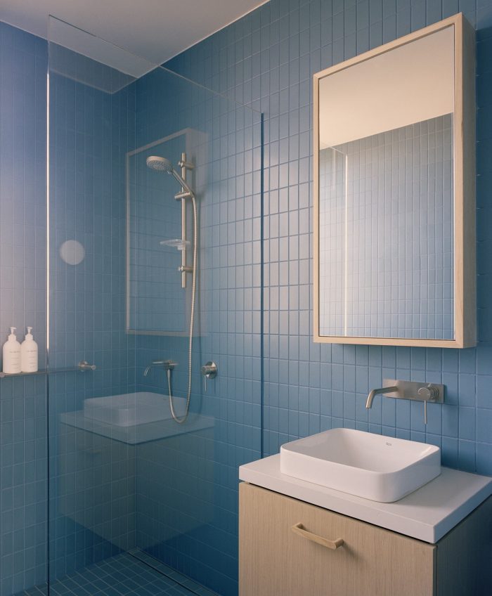 Inside the apartments, the palette is warm with splashes of color, while still restrained enough to allow future residents to add their own style to the spaces. With long-term occupation in mind, opportunities for storage are maximized so that growing families can expand within the space.