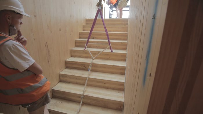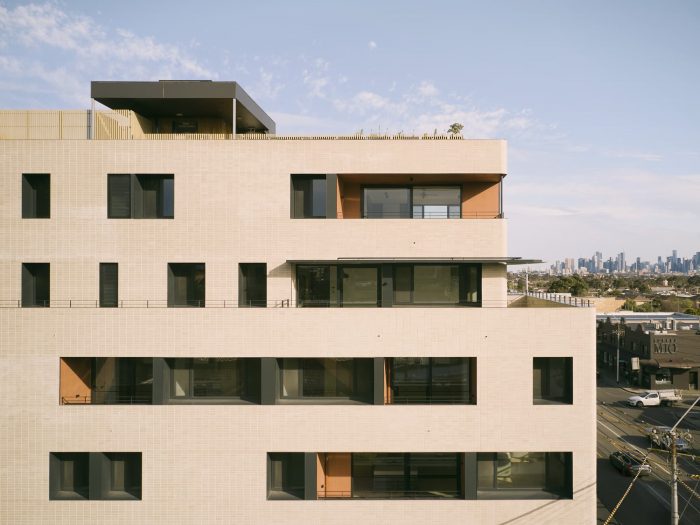 The building employs prefabricated cross-laminated timber (CLT) construction to achieve a more sustainable outcome, with the apartments achieving an 8.4-star rating on average. This building methodology allowed for greater flexibility of layout, with each level and apartment a completely individual design responding to the varied orientation, size, and aspect of each apartment.