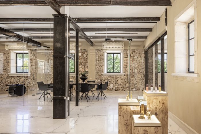 历史建筑中的古老与古典家具以及用最先进的现代技术制造的新颖化妆品的结合,给我们带来了一个独特的空间,为整体大于部分之和的概念赋予了新的意义。